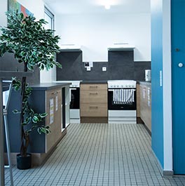 Sur le site de l’avenue Jean Jaurès, une cuisine aménagée et équipée (fours micro-ondes, plaques de cuisson, réfrigérateurs, mobilier adapté...), permet aux résidents de prendre leurs repas, notamment lorsque le restaurant-cafétéria est fermé le week-end, et d’y retrouver leurs amis dans une atmosphère reposante et conviviale.