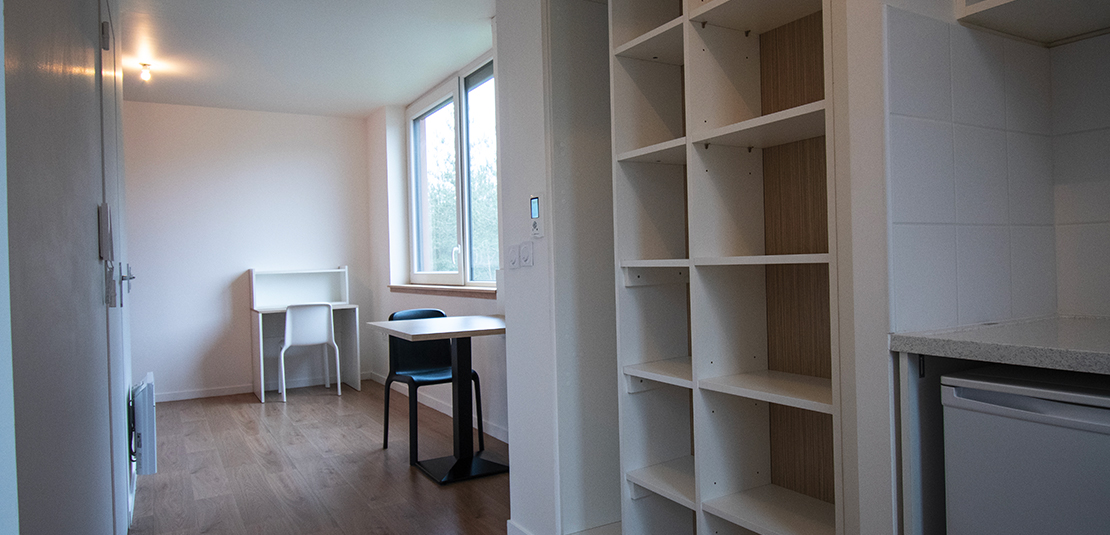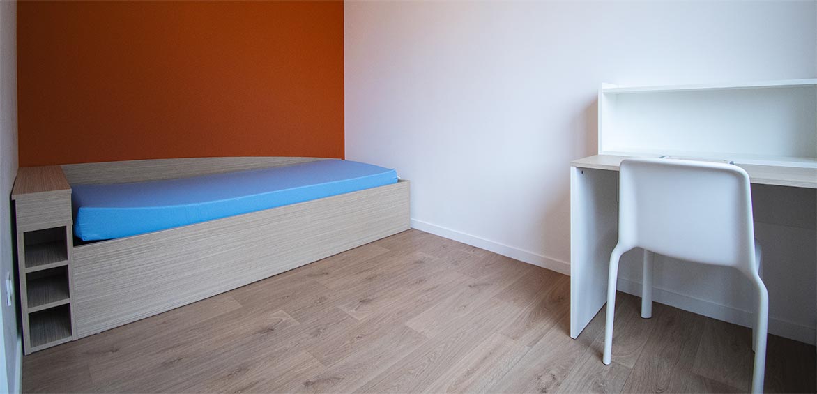 Sur le Campus de la Californie, nos 60 studios et T1 bis, d’une surface de 20 m2, ont été construits dans le cadre d’un projet architectural innovant, qui respecte les normes environnementales les plus récentes, afin de limiter la consommation énergétique des logements. Chaque hébergement se distingue par son confort, sa luminosité, la modernité et le caractère fonctionnel de son mobilier (notamment le bureau avec rangement).